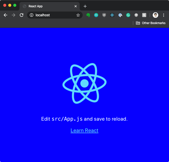 Build completed. you can open http://localhost (assuming you deployed this on a cluster running on your local machine), and you should see the default React app running.