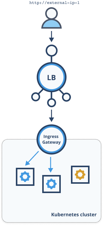 Now before you go and create multiple ingress gateways (and multiple load balancers with your cloud provider), make sure you need it - note that it costs money to run load balancers :). A lot of the scenarios can be covered with a single load balancer. The scenario with a single load balancer would look similar to the figure below.