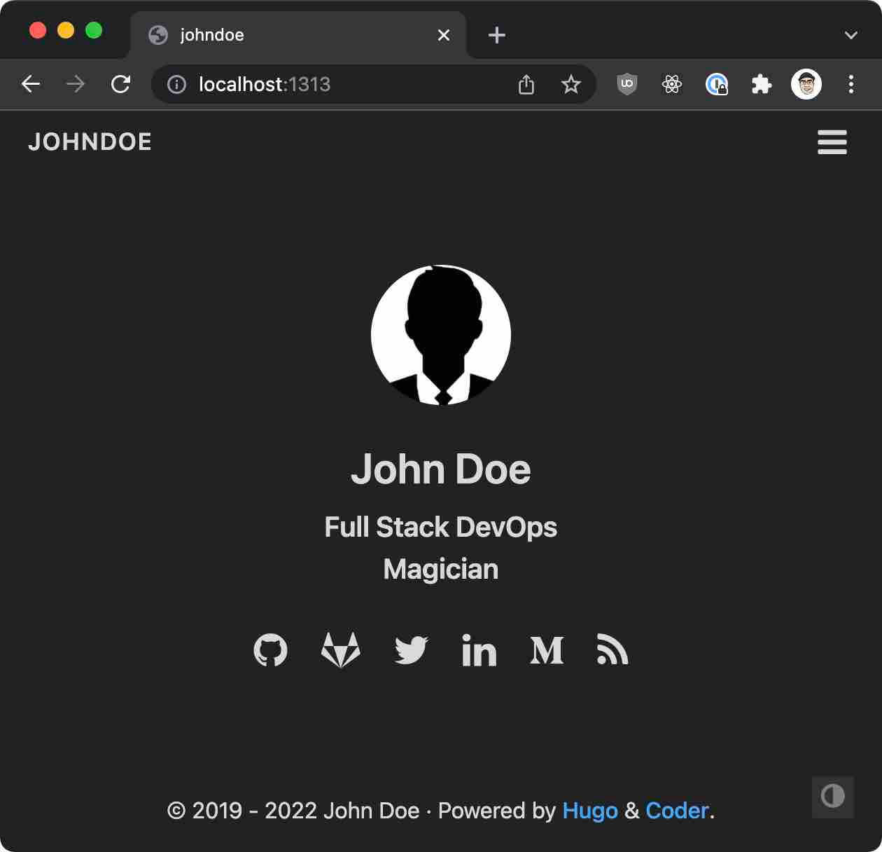 The above just creates an empty site, so we need a theme. I am using a theme called hugo-coder, but you could pick any theme you like.