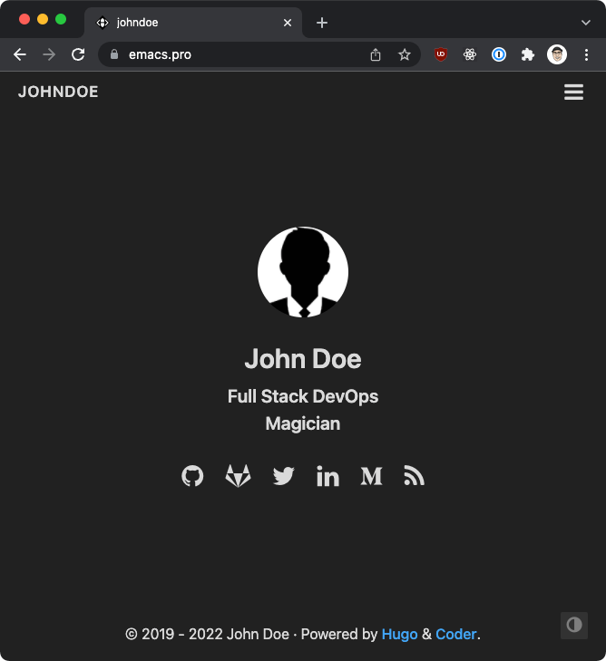 Let's restart Nginx sudo systemctl restart nginx and go to https://www.emacs.pro. We should see the Hugo site load correctly with all CSS and images.