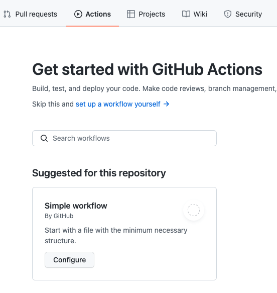 What we want to do next is create a Github workflow that starts each time we merge some changes to the main branch - for example, we modify the theme, add a new blog post, etc.