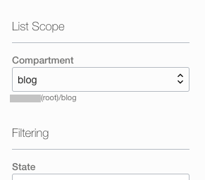 Open the navigation menu and select Compute and Instances to create the compute instance. On the instances page, make sure you select the blog compartment we created from under the List Scope section on the left side of the page. This will ensure the instance gets created in that compartment. It also serves as a filter for instances that are displayed on the page.
