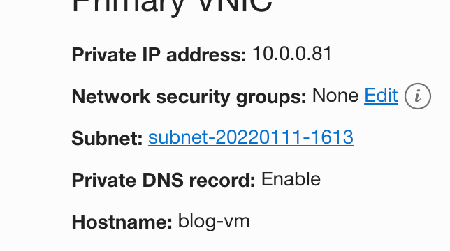 On the OCI dashboard and the instance details, click the subnet link to open the subnet details page.