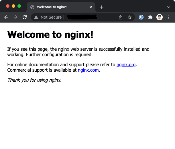 To check if everything is running, you can point your browser to the instance IP address, and you should see the "Welcome to nginx!" page.
